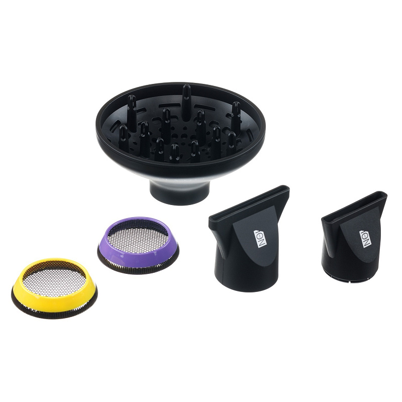 Наличие в комплекте запасных задних фильтров разных цветов позволяет проявить свою индивидуальность, компонуя их под настроение. В течение всего срока службы фена цвета не тускнеют и не стираются.