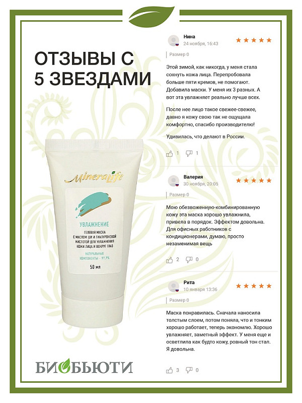 Восстанавливает кожу, улучшает цвет лица, насыщает влагой