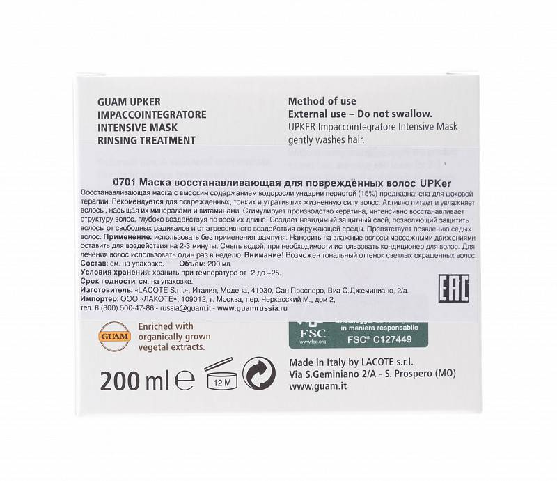 Маска восстанавливающая для поврежденных волос UPKer 200 млПричина уценки: