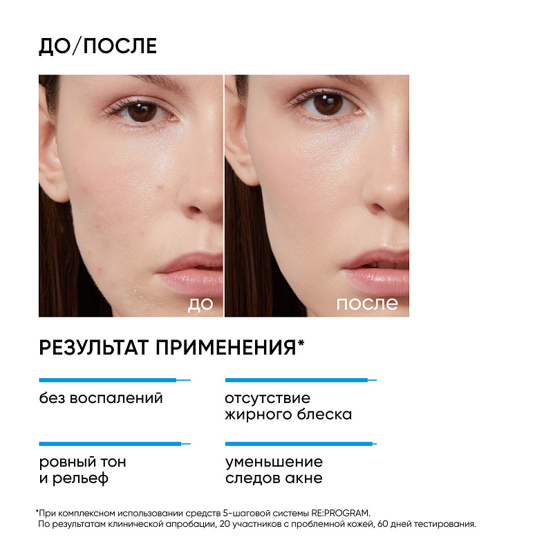 Результат: воспаления менее выражены, ровный и однородный тон лица.