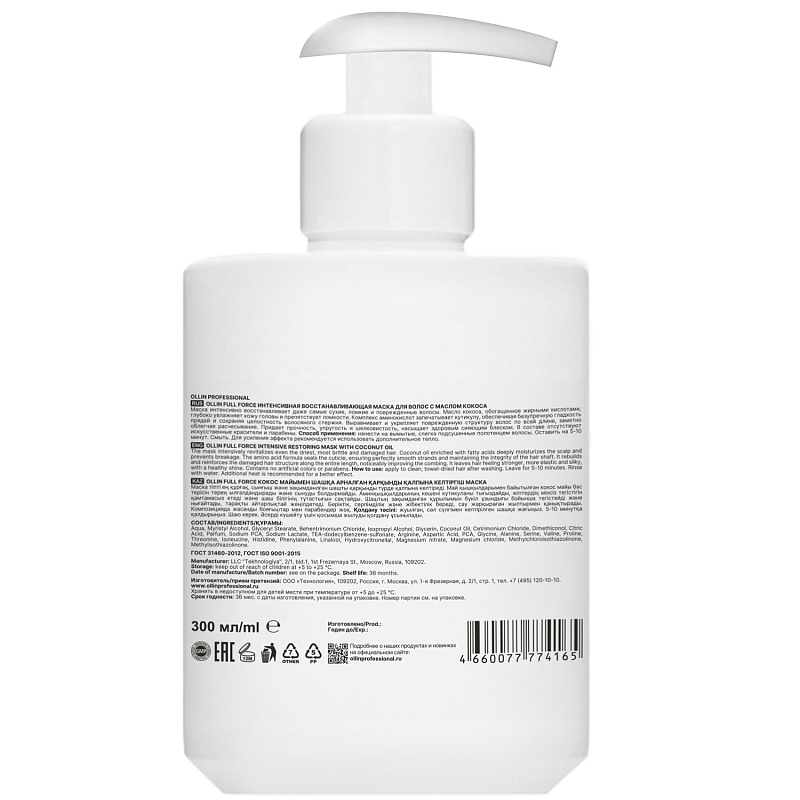 Интенсивная восстанавливающая маска с маслом кокоса для волос Full Force, 300 мл