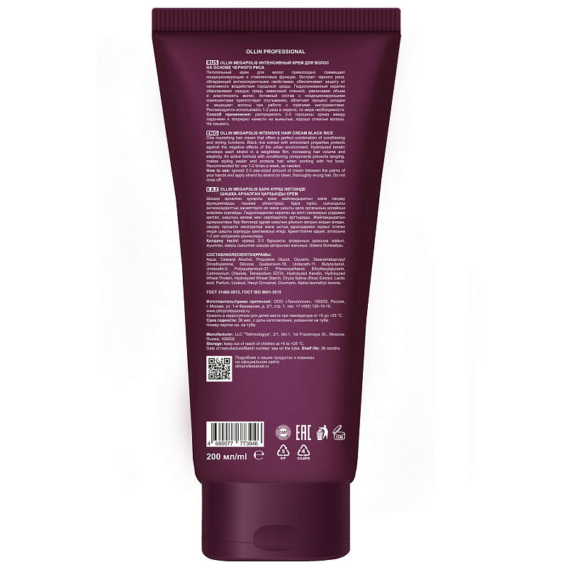 Интенсивный крем с экстрактом черного риса для волос Megapolis, 200 мл