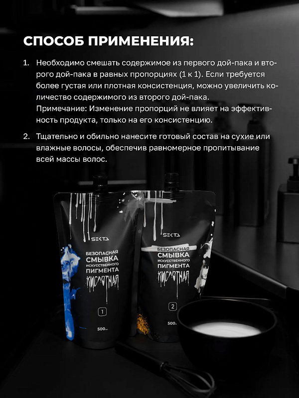 Меры предосторожности: продукт предназначен только для профессионального применения. Возможна индивидуальная непереносимость ингредиентов. Не работает с прямыми пигментами или красителями прямого действия. При появлении аллергической реакции немедленно прекратите использование. При попадании на слизистые оболочки промойте большим количеством воды.