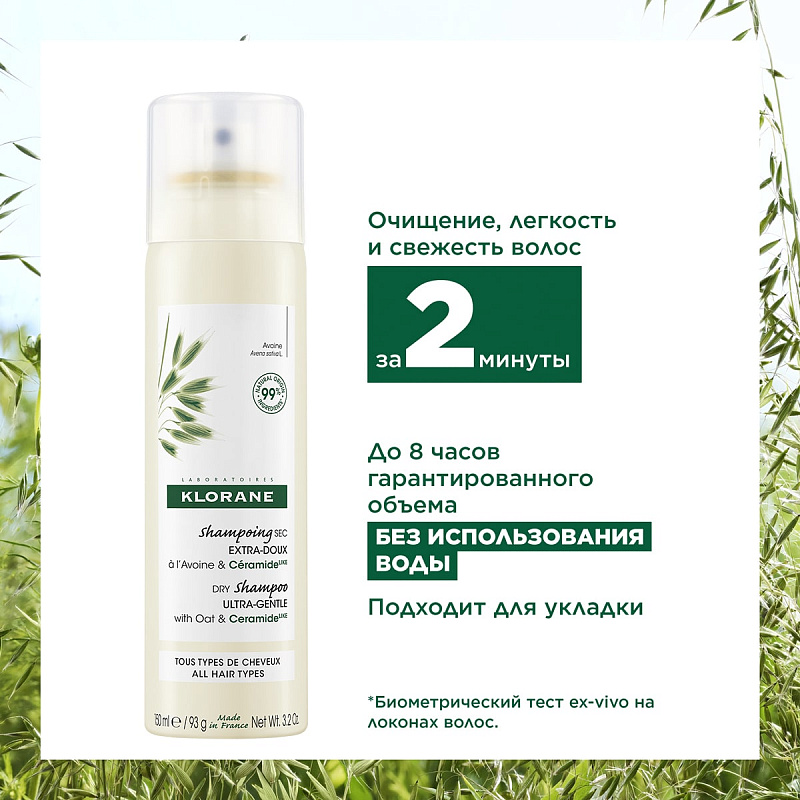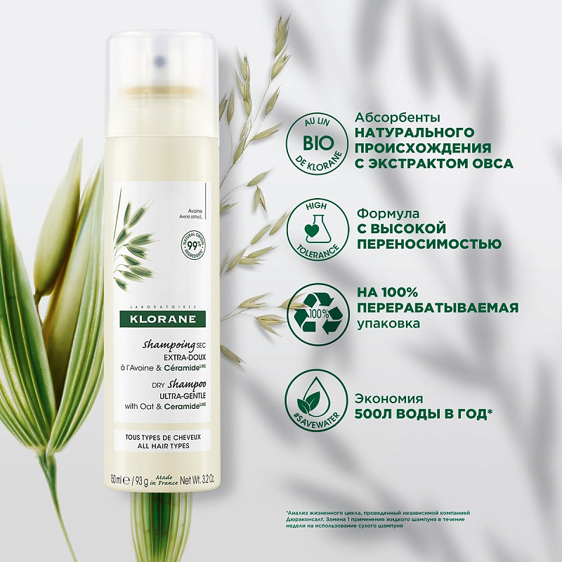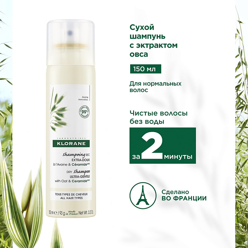 Восстанавливающий сухой шампунь с экстрактом овса, 150 мл
