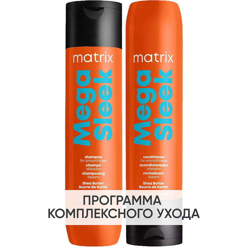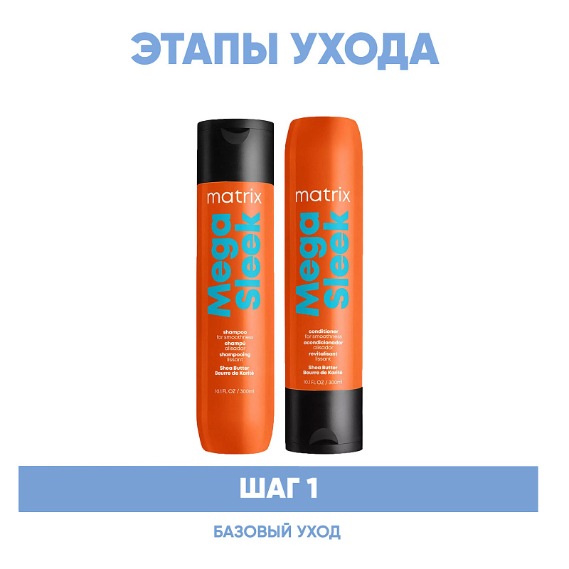 ПРОГРАММА КОМПЛЕКСНОГО УХОДА Matrix Mega Sleek для придания гладкости непослушным волосам. Комплексный уход представляет собой дополняющие друг друга средства, совместное использование которых будет максимально эффективным. Первым шагом программы является базовый уход (очищение + питание), вторым – дополнительный уход (средства, усиливающие эффект базовой программы и применяемые постоянно или периодически).Набор не имеет внешней упаковки, товары могут вкладываться в заказ по отдельности.