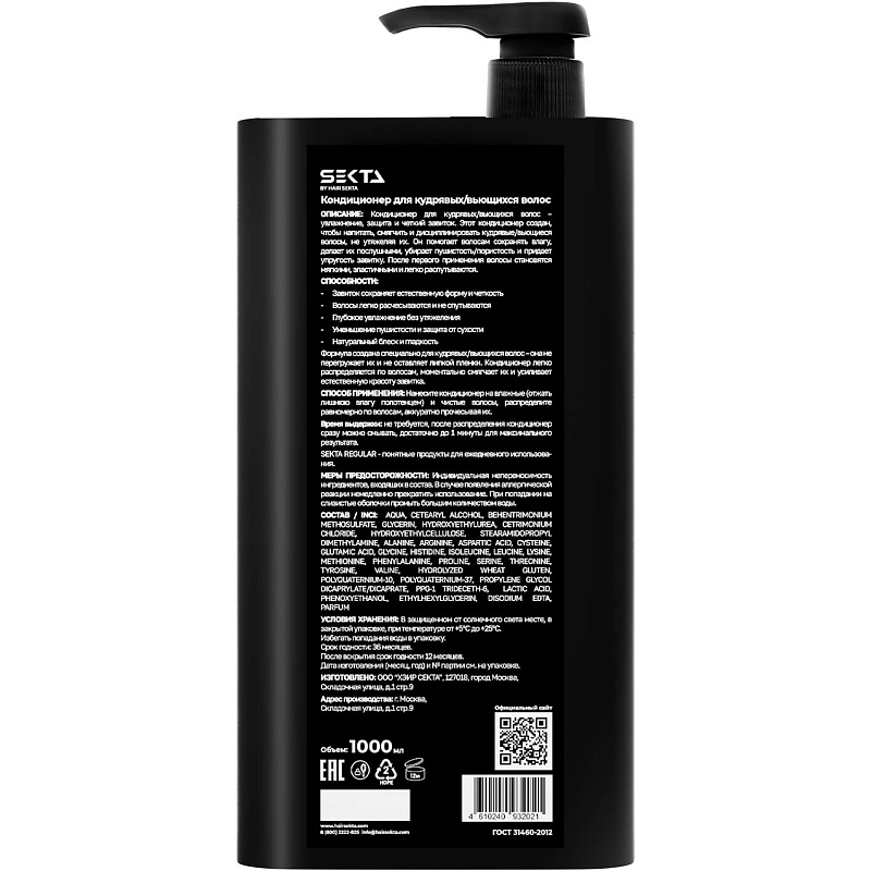 Кондиционер для кудрявых и вьющихся волос SEKTA REGULAR: увлажнение, защита и сохранение четкого завитка.
