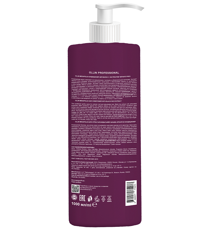 Бессульфатный кондиционер с экстрактом черного риса, 1000 мл