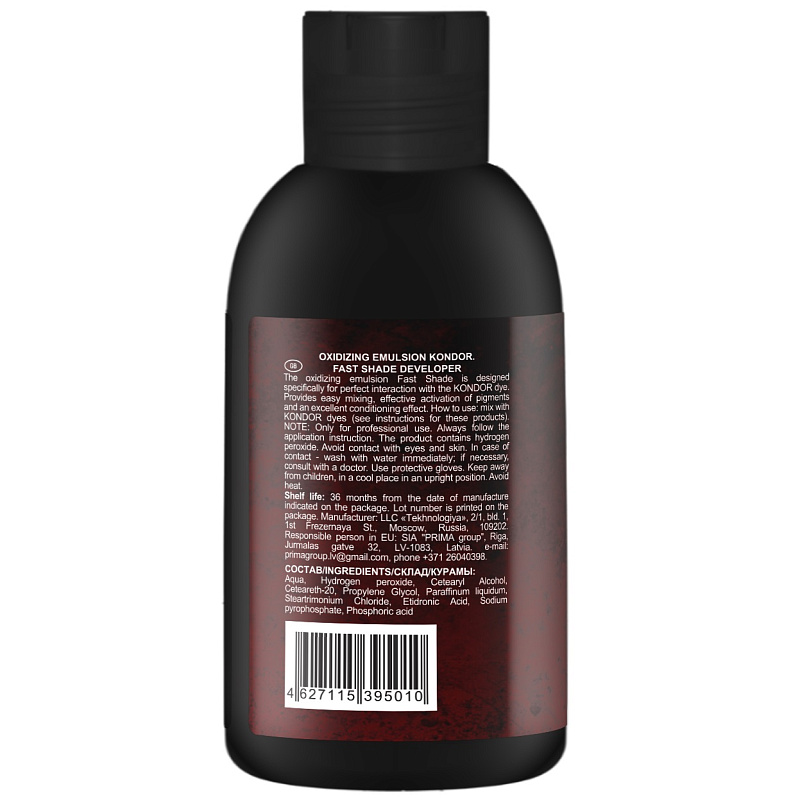 Состав: aqua, hydrogen peroxide, cetearyl alcohol, propylene glycol, ceteareth-20, mineral oil, steartrimonium chloride, sodium pyrophosphate, etidronic acid, phosphoric acid