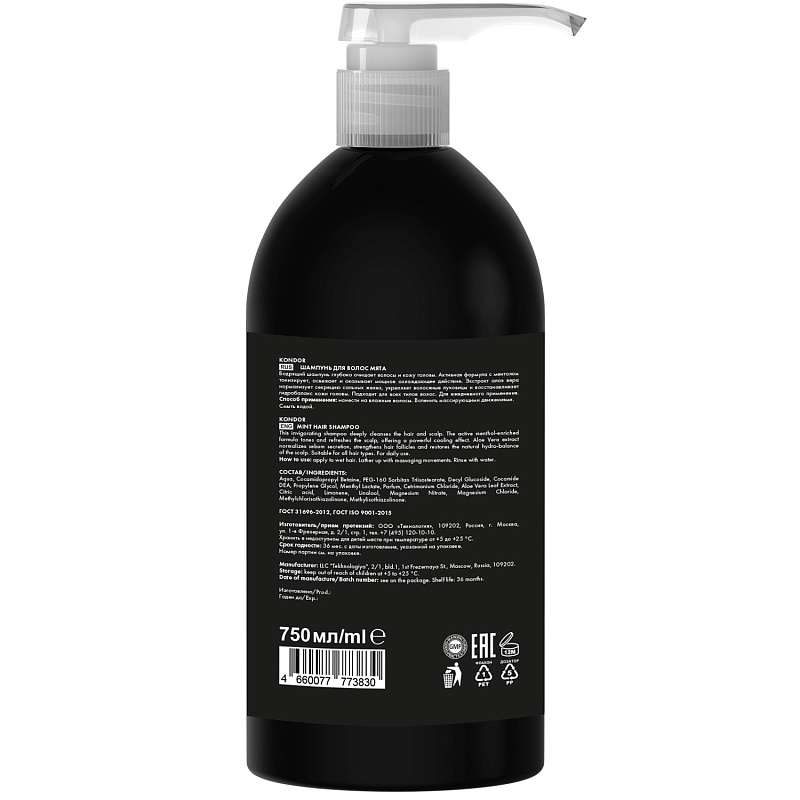 Шампунь для всех типов мужских волос "Мята", 750 мл