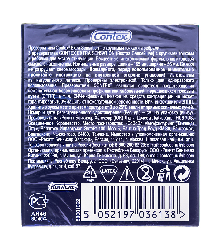 Презервативы Extra Sensation с крупными точками и ребрами, 3 шт