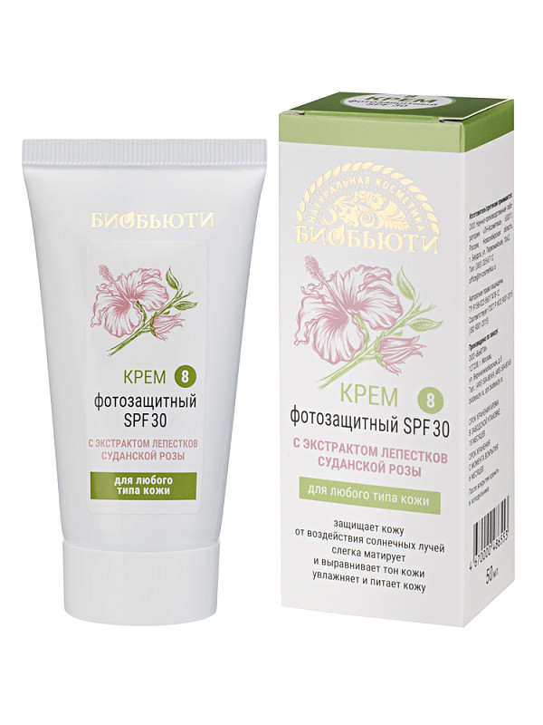 Крем № 8 "Фотозащитный SPF 30" для любого типа кожи, 50 мл