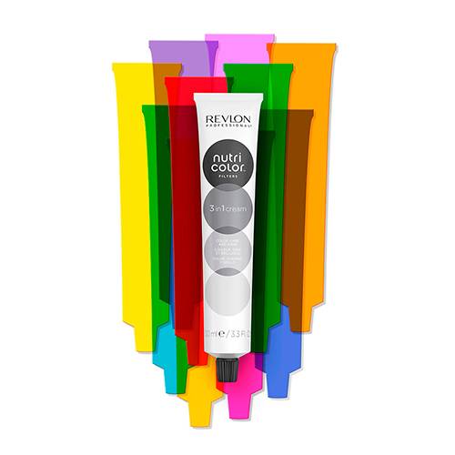Прямой краситель без аммиака Revlon Professional Nutri Color Filters. Отвечайте на любой тренд с этой универсальной и захватывающей модной палитрой. Для самых смелых цветов волос. Выразительные красочные фильтры, идеально подходящие для усиления оттенков или создания макияжа. 3 минуты для обновления цвета. 15 минут для модных / насыщенных цветов на предварительно осветленных или обесцвеченных волосах.
