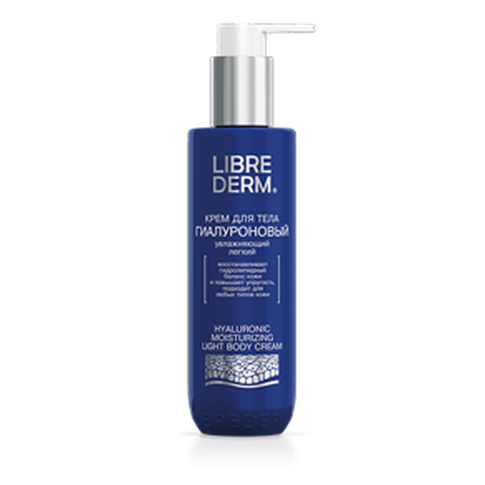Гиалуроновый крем для тела Librederm способствует восстановлению гидролипидного баланса кожи и укреплению ее структуры. Формула крема содержит компоненты, которые питают и повышают тонус кожи, создавая невидимый естественный барьер, защищающий от потери влаги в течение дня, а также препятствующий появлению неприятного запаха
