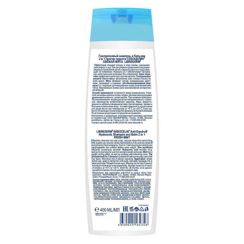 Состав: aqua, sodium laureth sulfate, cocamidopropyl betaine, glycerin, cocamide dea, sodium chloride, glycol distearate, zinc pyrithione, coco-glucoside, glyceryl oleate, hydroxypropyl guar hydroxypropyltrimonium chloride, mentha citrata leaf extract, sodium hyaluronate, polyquaternium-44, polyacrylate crosspolymer- 6, zinc gluconate, magnesium hydroxide, magnesium carbonate hydroxide, menthol, zinc pca, propylene glycol, parfum, citric acid, magnesium nitrate, methylchloroisothiazolinone, magnesium chloride, methylisothiazolinone, tetrasodium edta, ci 19140, ci 42051.