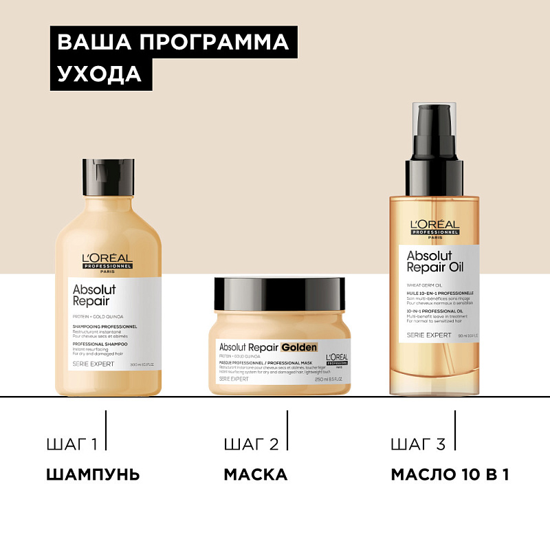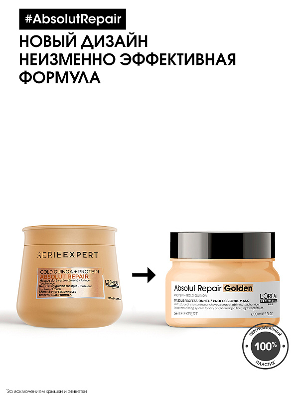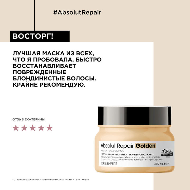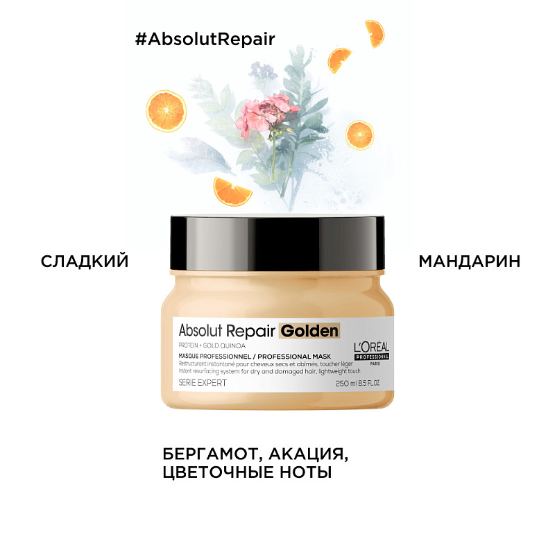 Маска с золотой текстурой для восстановления поврежденных волос Absolut Repair Gold, 250 мл