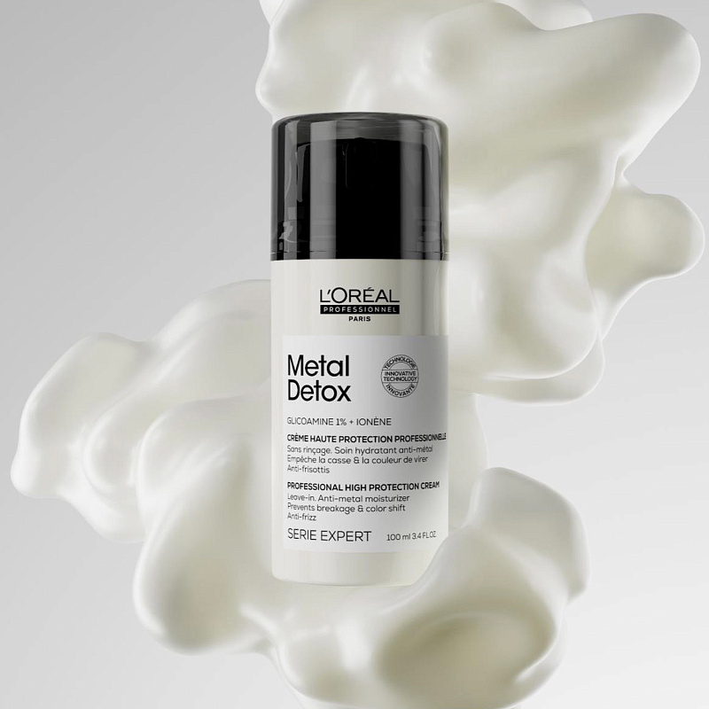 Несмываемый крем Metal Detox препятствует накоплению металла (частиц меди) и ломкости волос, а так же защищает яркость оттенка.