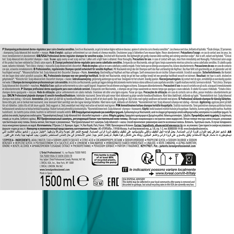 Шампунь регулирующий баланс чувствительной кожи головы Scalp Advanced, 1500 мл