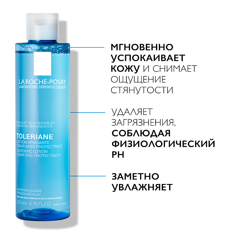 Успокаивающий тоник для чувствительной кожи лица и глаз создан на основе термальной воды La Roche-Posay. Эффективно удаляет макияж, деликатно смягчает кожу после умывания водопроводной водой и не вызывает раздражений. При этом не оставляет жирного блеска и хорошо впитывается, придавая матовый эффект. Средство обладает оптимальной переносимостью и имеет физиологический уровень pH, некомедогенно.