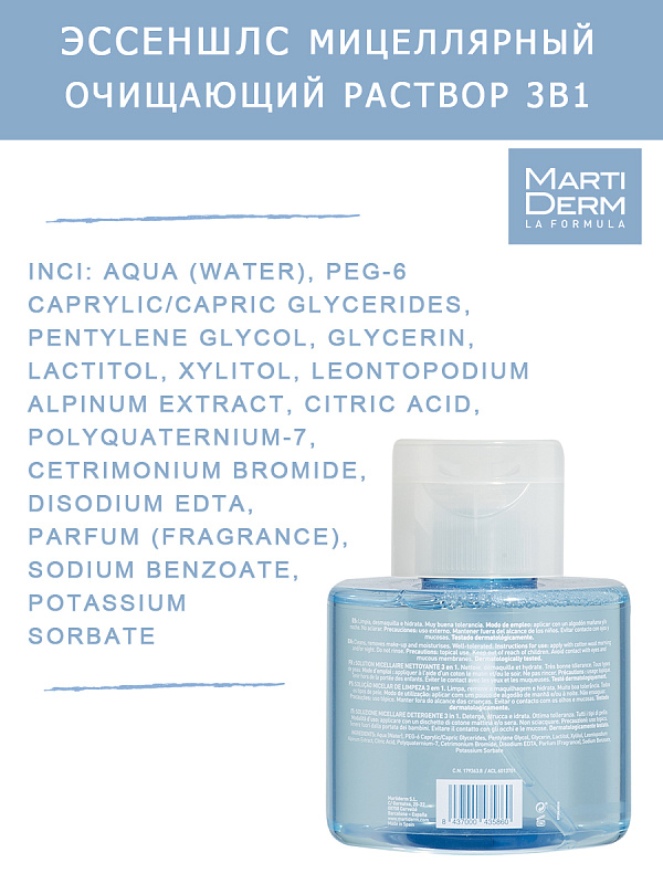 Мицеллярный очищающий раствор 3 в 1 Essentials, 300 мл