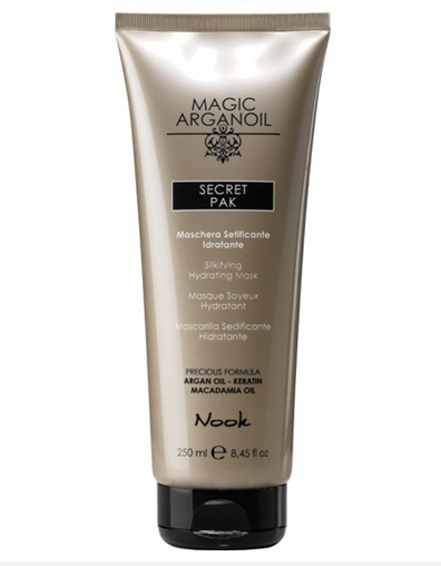 Увлажняющая маска Nook Magic Arganoil Secret представляет собой ухаживающее средство, предназначенное для истонченных, пересушенных, безжизненных прядей. Формула продукта насыщена натуральным сертифицированным маслом аргана и кератином. Они пробираются в структуру волоска, регенерируя его и наполняя недостающими микроэлементами и полезными веществами. После применения маски шевелюра напитывается влагой, приобретает невероятный блеск, становится шелковистой и эластичной.
