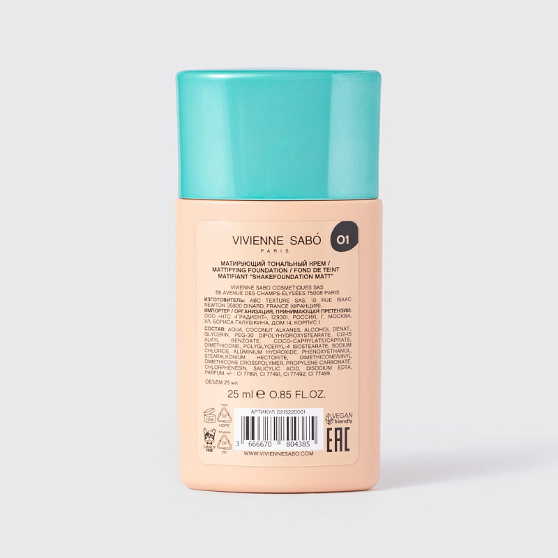 Матирующий тональный крем Shake Foundation Matt, 01 Светло-бежевый,