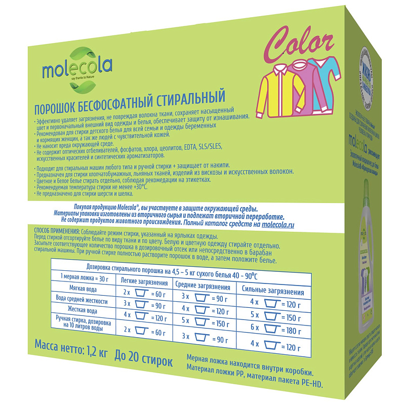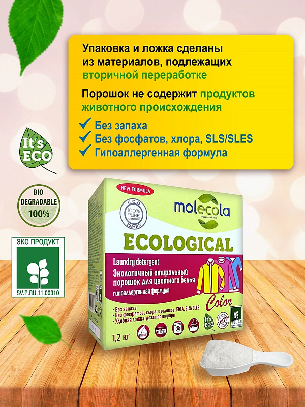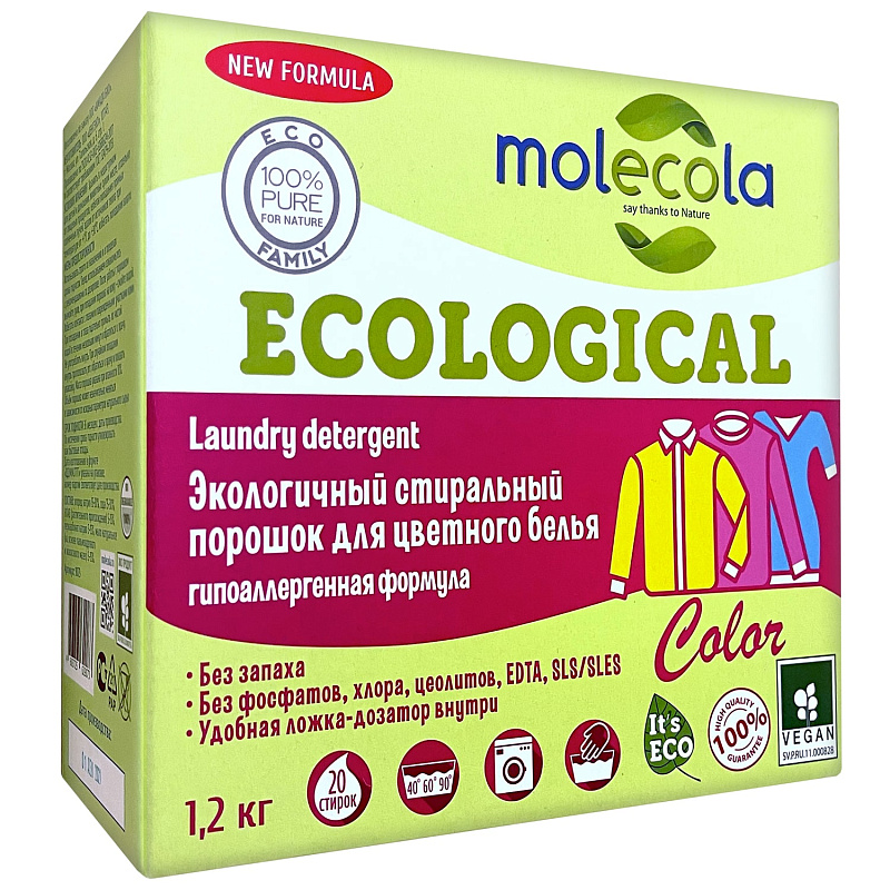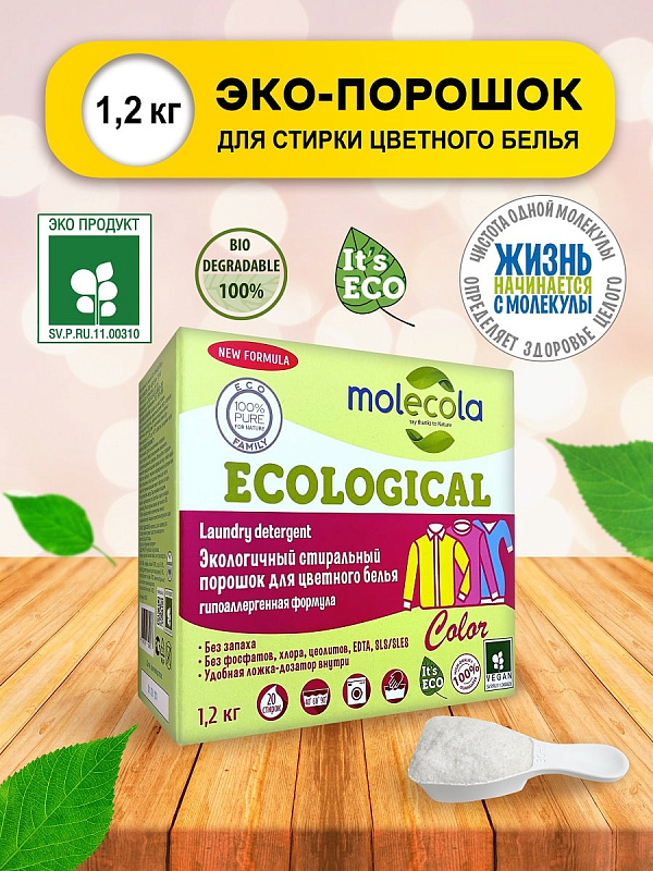 Стиральный порошок для цветного белья с растительными энзимами, экологичный, 1200 гр