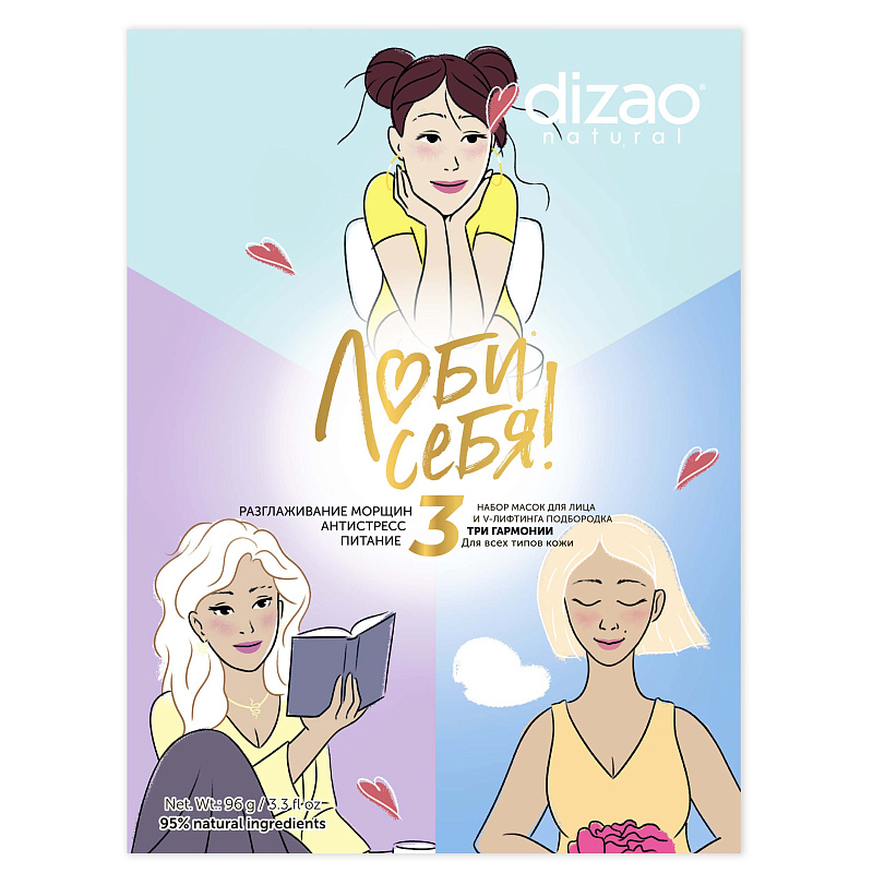 Набор масок для лица, шеи и V-лифтинга подбородка "Три гармонии" для всех типов кожи, 3 шт