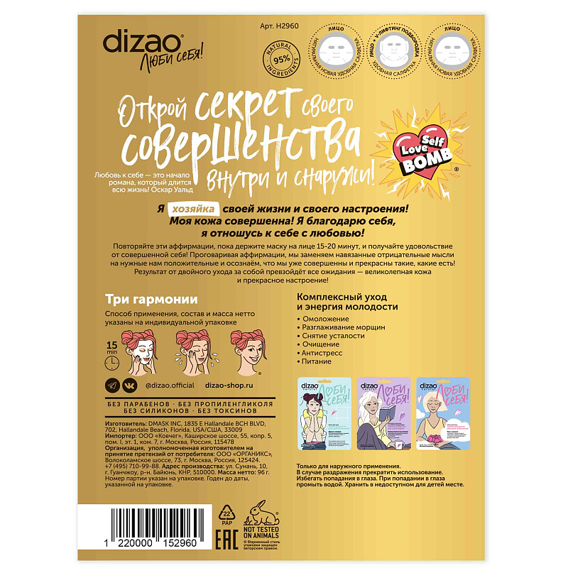 В набор входят три маски, каждая из которых способна подарить отличное настроение: