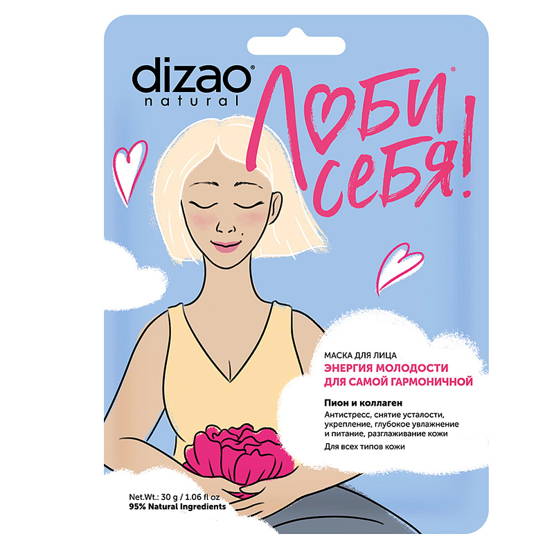 • Пион и коллаген: 95% натуральных ингридиентов - экстракт пиона, коллаген, гиалуроновая кислота, экстракт центеллы, зеленого чая, ромашки