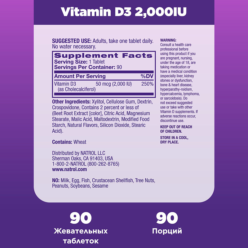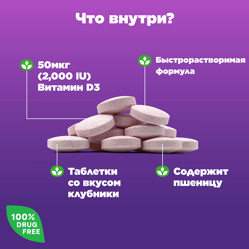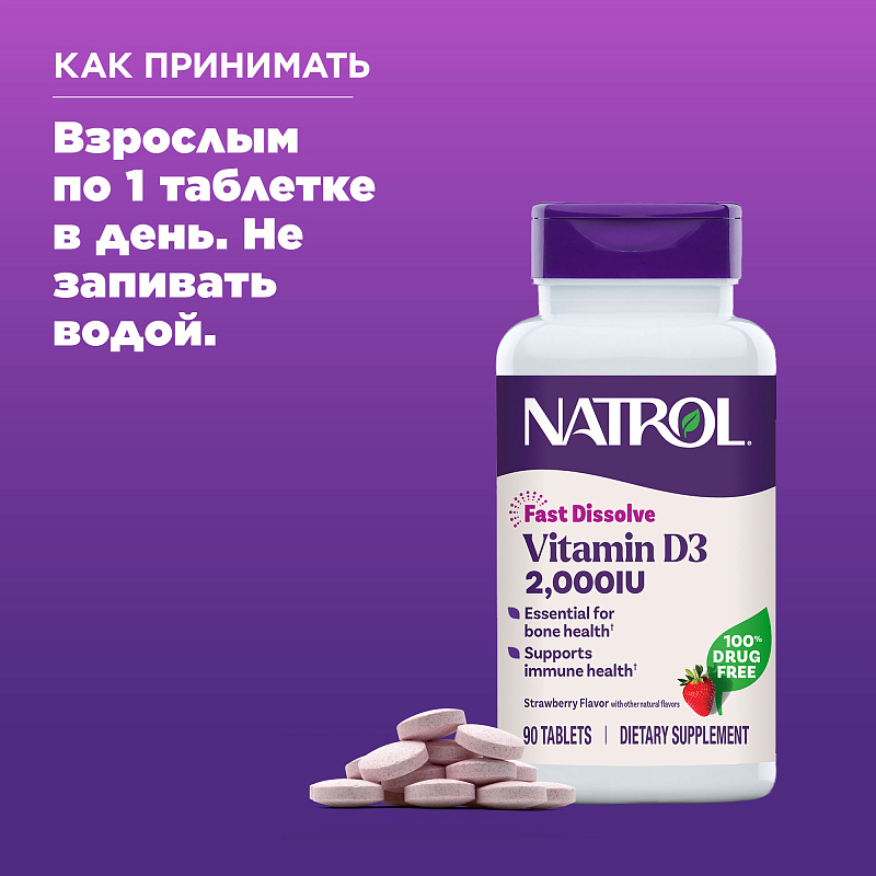 Витамин D3 быстрорастворимый со вкусом клубники 2000, 90 таблеток