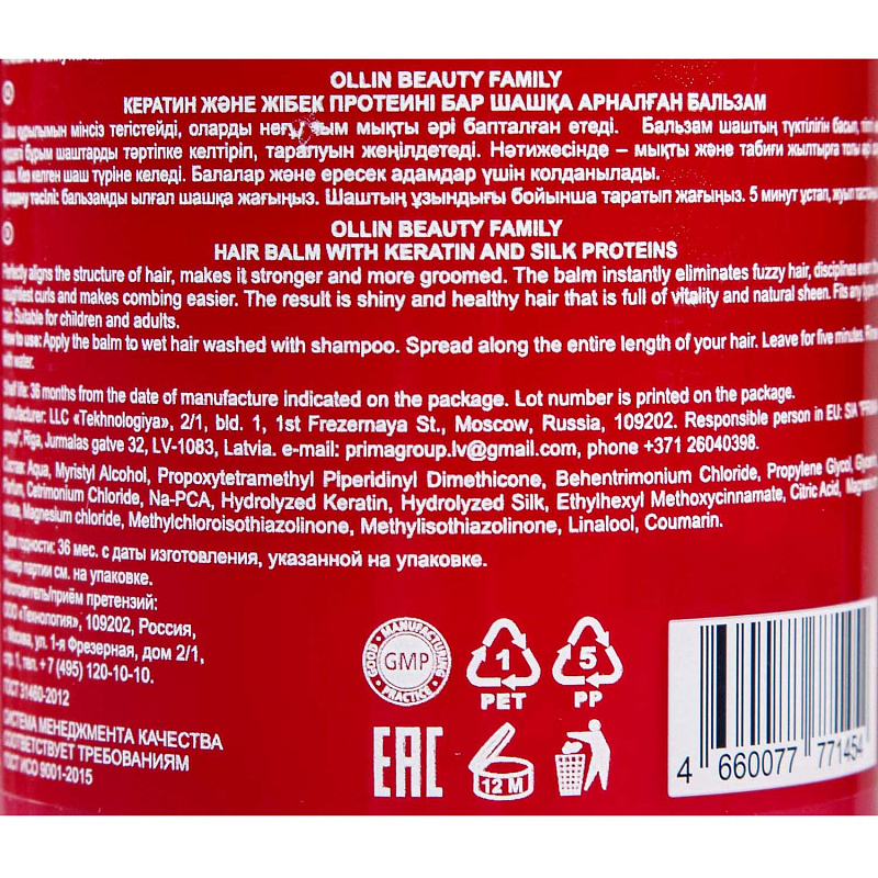 Бальзам для волос с кератином и протеинами шёлка, 500 мл