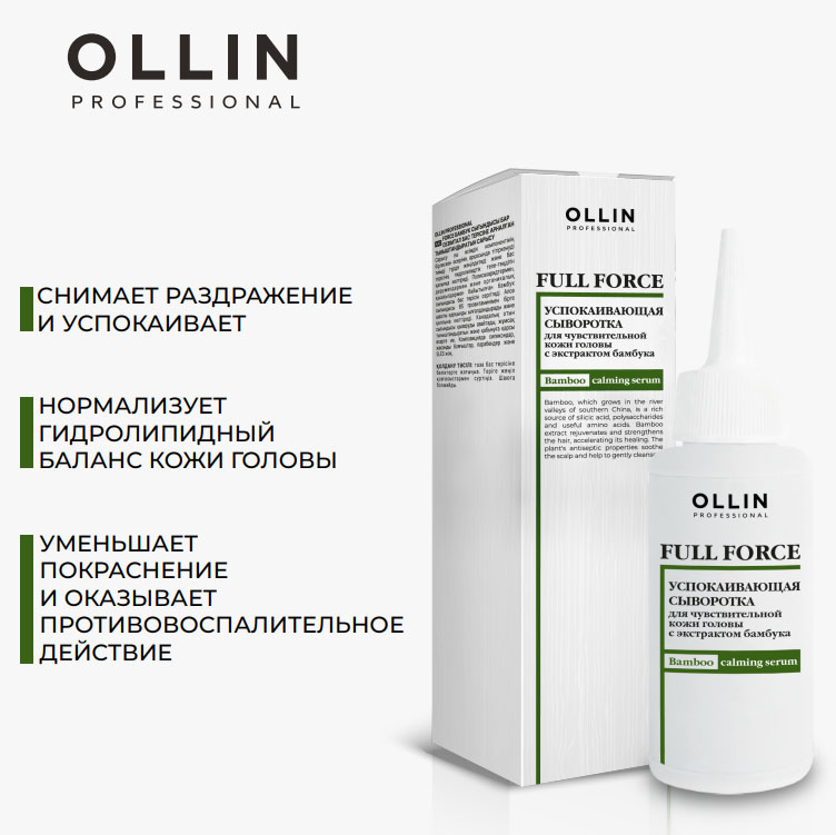 Успокаивающая сыворотка с экстрактом бамбука для чувствительной кожи головы Full Force, 80 мл