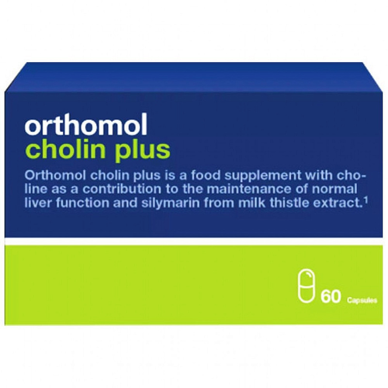 Orthomol Cholin Plus - сбалансированный комплекс витаминов, антиоксидантов и микроэлементов. Основных активных веществ два – это холин и расторопша.