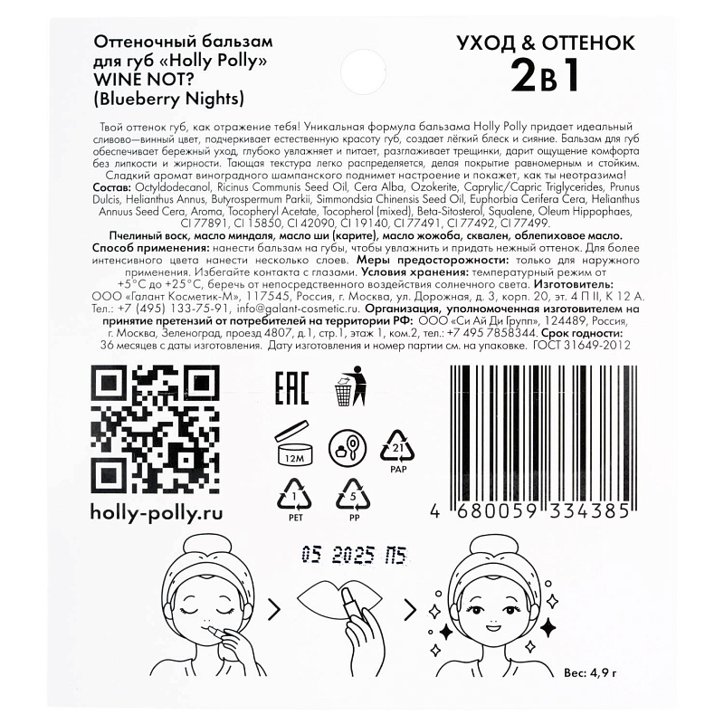 Оттеночный бальзам для губ Wine Not? Blueberry Nights сливово-винный, 4,9 гр