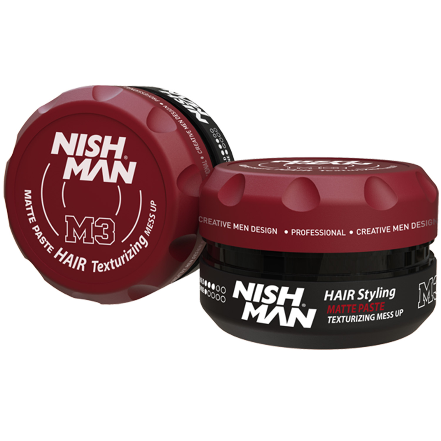 Матовая паста для формирования беспорядочной фиксации. Воскообразная консистенция обеспечивает матовую поверхность, при этом легко распределяется по волосам. Паста для укладки M3 похожа на пасту M1 по своей текстуре и эффекту, но ее легче использовать и наносить на волосы. Можно использовать для волос длиннее 5 см.