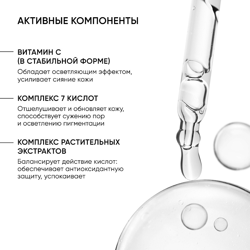 Пилинг с витамином С с 15% комплексом кислот для всех типов кожи лица, 30 мл