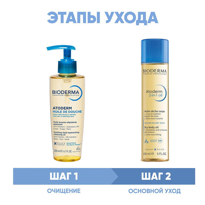 ПРОГРАММА КОМПЛЕКСНОГО УХОДА Bioderma Atoderm для ухода за атопичной, сухой, очень сухой и чувствительной кожей лица и тела. Комплексный уход представляет собой дополняющие друг друга средства, совместное использование которых будет максимально эффективным. Первым шагом программы является очищение, вторым - основной уход. В третий шаг входят дополнительные средства, усиливающие эффект основной программы и применяемые постоянно или периодически на различных этапах ухода.