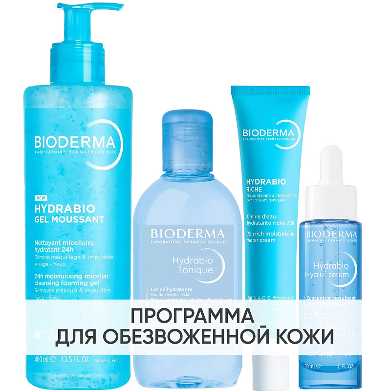 ПРОГРАММА КОМПЛЕКСНОГО УХОДА Bioderma Hydrabio для обезвоженной кожи. Комплексный уход представляет собой дополняющие друг друга средства, совместное использование которых будет максимально эффективным. Первым шагом программы является очищение, вторым - основной уход. В третий шаг входят дополнительные средства, усиливающие эффект основной программы и применяемые постоянно или периодически на различных этапах ухода.