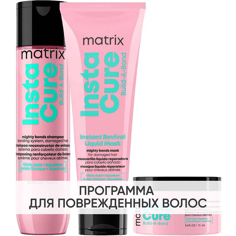 ПРОГРАММА КОМПЛЕКСНОГО УХОДА Matrix Instacure Build-A-Bond для поврежденных волос. Комплексный уход представляет собой дополняющие друг друга средства, совместное использование которых будет максимально эффективным. Первым шагом программы является базовый уход (очищение + питание), вторым – дополнительный уход (средства, усиливающие эффект базовой программы и применяемые постоянно или периодически).