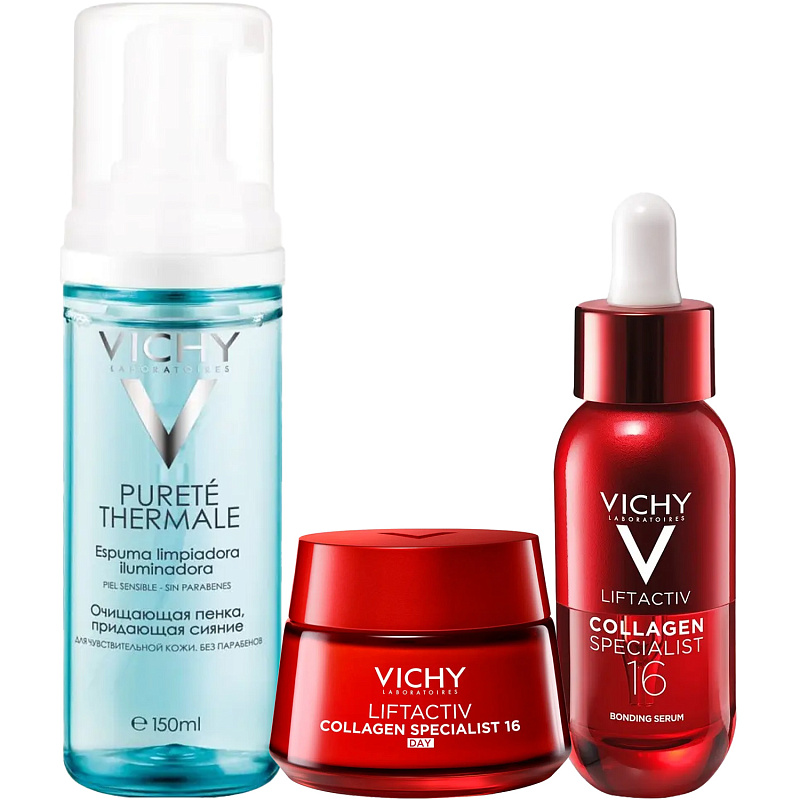 ПРОГРАММА КОМПЛЕКСНОГО УХОДА Vichy Liftactiv Collagen Specialist для борьбы с признаками старения лица. Комплексный уход представляет собой дополняющие друг друга средства, совместное использование которых будет максимально эффективным. Первым шагом программы является очищение, вторым - основной уход. В третий шаг вошли дополнительные средства, усиливающие эффект основной программы и применяемые постоянно или периодически на различных этапах ухода.