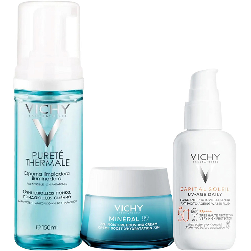 ПРОГРАММА КОМПЛЕКСНОГО УХОДА Vichy Mineral 89 для увлажнения и укрепления кожи, а также борьбы с первыми признаками старения. Комплексный уход представляет собой дополняющие друг друга средства, совместное использование которых будет максимально эффективным. Первым шагом программы является очищение, вторым - основной уход. В третий шаг вошли дополнительные средства, усиливающие эффект основной программы и применяемые постоянно или периодически на различных этапах ухода.