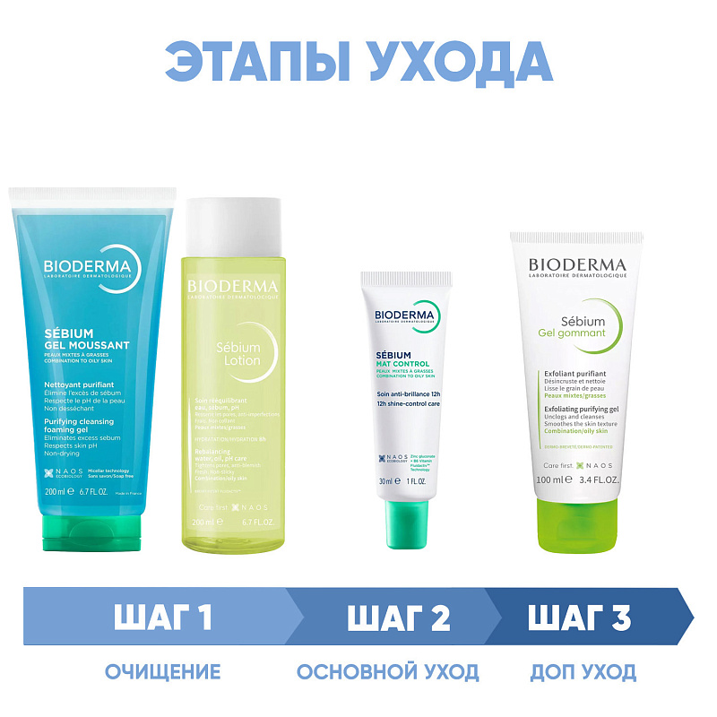 ПРОГРАММА КОМПЛЕКСНОГО УХОДА для жирной и комбинированной кожи лица с тенденцией к акне. Комплексный уход представляет собой дополняющие друг друга средства, совместное использование которых будет максимально эффективным. Первым шагом такой программы всегда является очищение, вторым - основной уход.