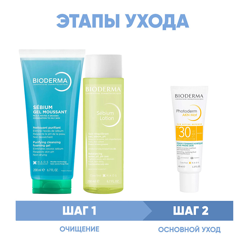 ПРОГРАММА КОМПЛЕКСНОГО УХОДА для жирной и комбинированной кожи лица с тенденцией к акне. Комплексный уход представляет собой дополняющие друг друга средства, совместное использование которых будет максимально эффективным. Первым шагом такой программы всегда является очищение, вторым - основной уход.