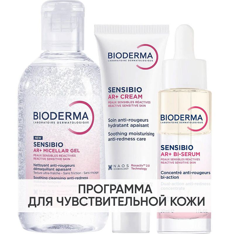 ПРОГРАММА КОМПЛЕКСНОГО УХОДА Bioderma Sensibio AR для чувствительной и реактивной кожи с покраснениями и розацеа. Комплексный уход представляет собой дополняющие друг друга средства, совместное использование которых будет максимально эффективным. Первым шагом программы является очищение, вторым - основной уход. В третий шаг входят дополнительные средства, усиливающие эффект основной программы и применяемые постоянно или периодически на различных этапах ухода.
