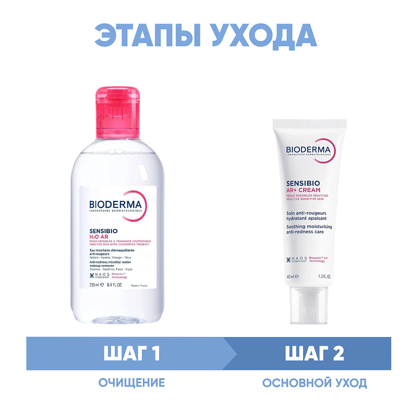 ПРОГРАММА КОМПЛЕКСНОГО УХОДА Bioderma Sensibio AR для чувствительной и реактивной кожи с покраснениям и розацеа. Комплексный уход представляет собой дополняющие друг друга средства, совместное использование которых будет максимально эффективным. Первым шагом программы является очищение, вторым - основной уход. В третий шаг входят дополнительные средства, усиливающие эффект основной программы и применяемые постоянно или периодически на различных этапах ухода.
