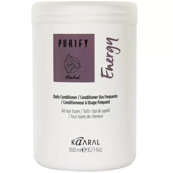 Кондиционер Kaaral Purify Energy Conditioner от итальянского бренда Kaaral создан специально для ухода за склонными к жирности, тусклыми и лишенными природной силы волосами. Входящий в состав продукта экстракт перечной мяты способствует улучшению кровообращения в верхних слоях эпидермиса, стимулирует питание корней волос и ускоряет рост локонов. Прекрасно тонизирует и укрепляет ослабленные пряди, помогает нормализовать работу сальных желез и предупредить быстрое загрязнение волос кожной секрецией. Благодаря сбалансированному комплексу увлажняющих компонентов кондиционер Kaaral Purify Energy Conditioner хорошо смягчает волосы, обеспечивает им необходимый уровень насыщения влагой, позволяет навсегда забыть о ломкости и чрезмерной сухости кончиков. Уберегает от быстрой дегидрации, обеспечивает прядям защиту во время укладки или сушки с использованием термоинструмента. Продукт прекрасно кондиционирует локоны, делает их послушными и аккуратными, снимает эффект статического электричества, облегчает расчесывание.