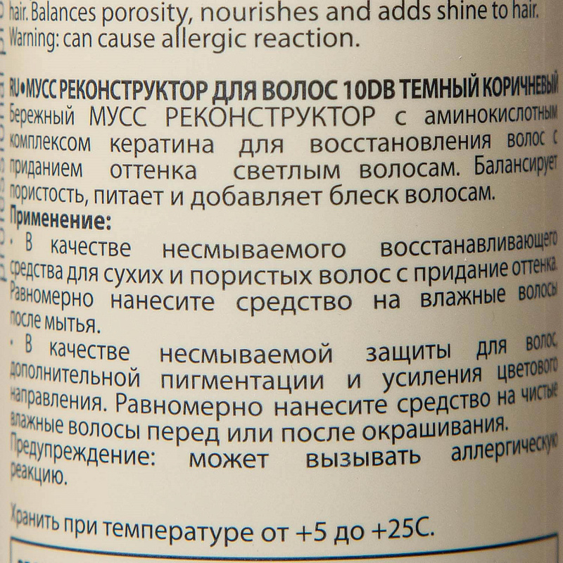 Мусс-реконструктор для волос Chocolate 10DB, Шоколад, 200 мл