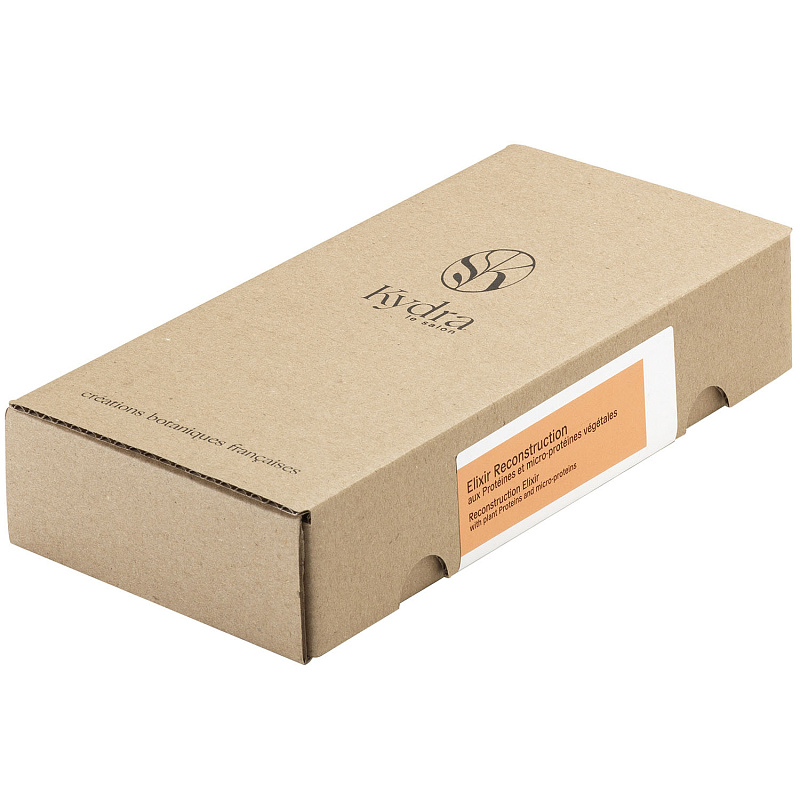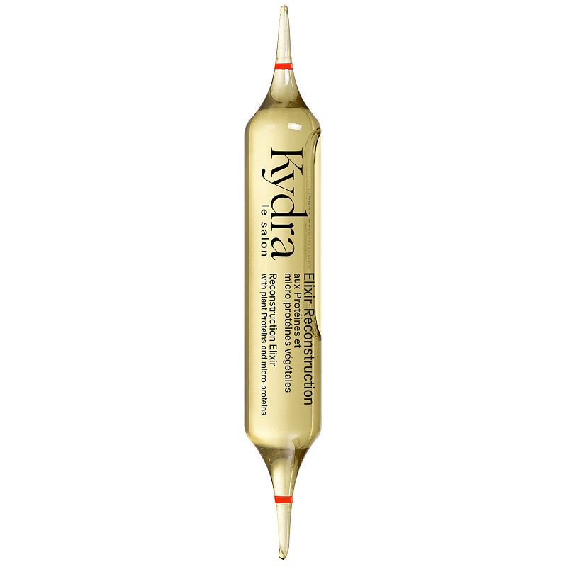 Реконструирующий эликсир с растительными белками и микропротеинами, близкие по составу натуральному кератину, восстанавливает структурные связи волос.