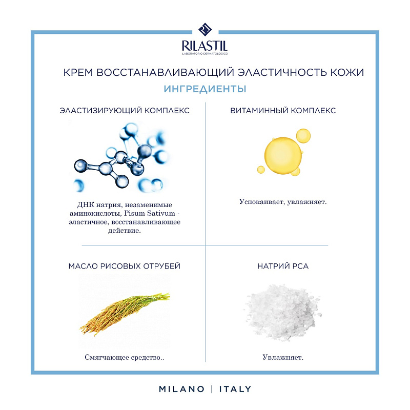 • масло рисовых отрубей - способствует физиологическим процессам восстановления кожи, для восстановления эластичности и упругости кожи, уменьшения послеоперационных или посттравматических рубцов