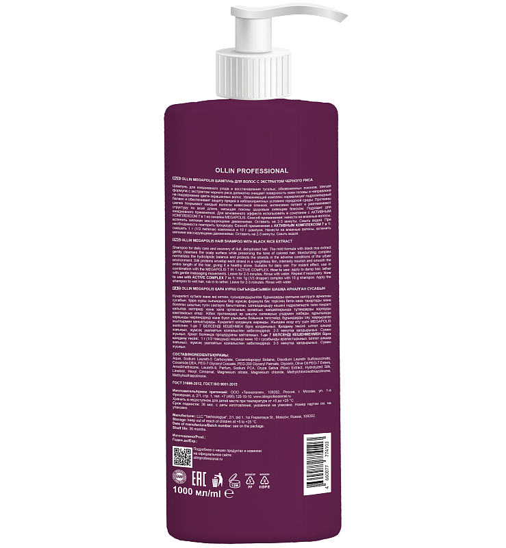 Бессульфатный шампунь с экстрактом черного риса, 1000 мл